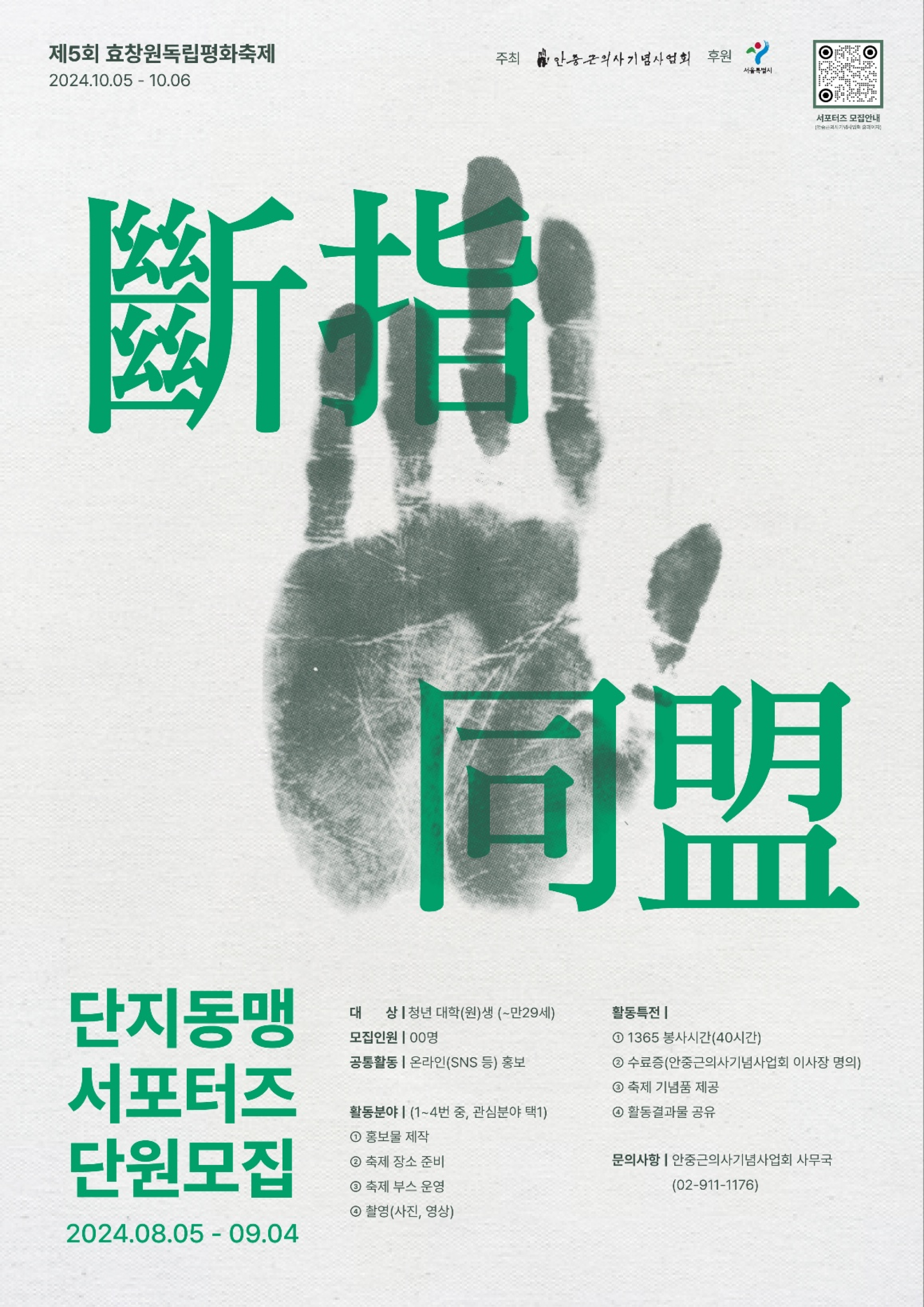 2024 제5회 효창원독립평화축제 서포터즈 <단지동맹> 모집공모