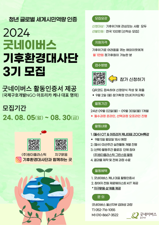굿네이버스 기후환경대사단 3기 모집 및 신청 안내