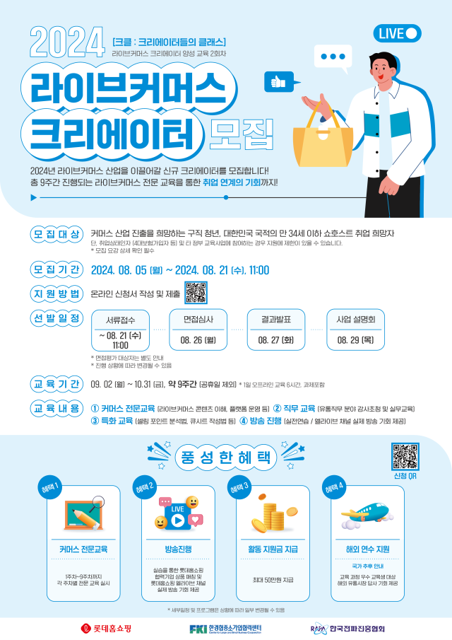 - 2024년 라이브커머스 산업을 이끌어갈 신규 크리에이터를 모집합니다!