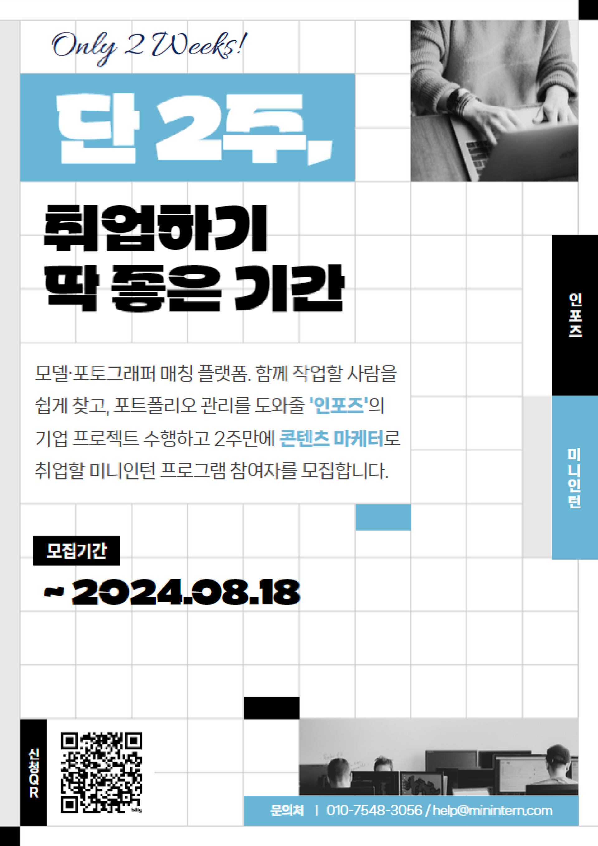 [미니인턴X인포즈] 모델&포토그래퍼 매칭 플랫폼 인포즈의 SNS 마케팅 콘텐츠 기획하고 취뽀할 사람 찾습니다! (~8/18)