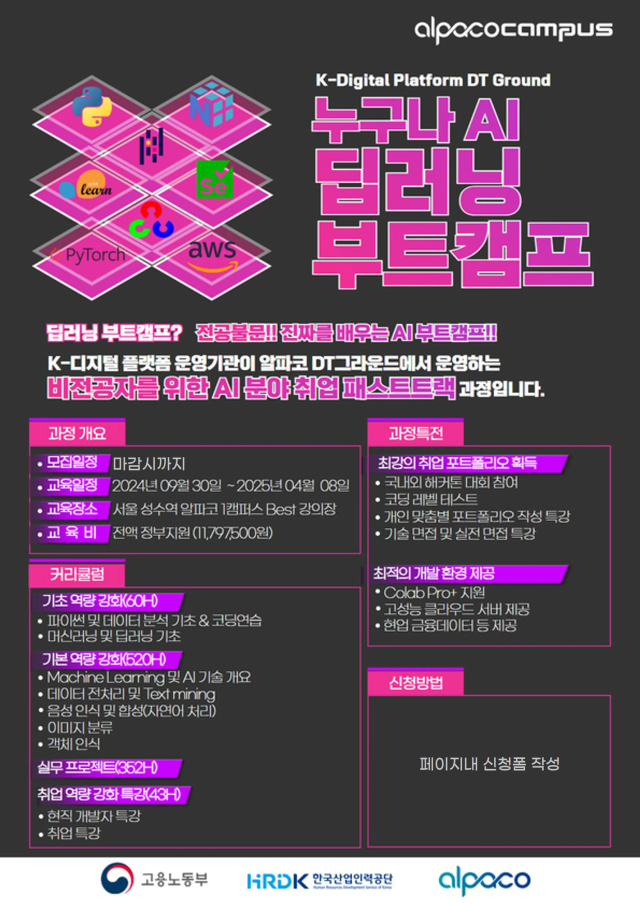 [서울 알파코] AI인공지능 딥러닝 빅데이터분석 부트캠프