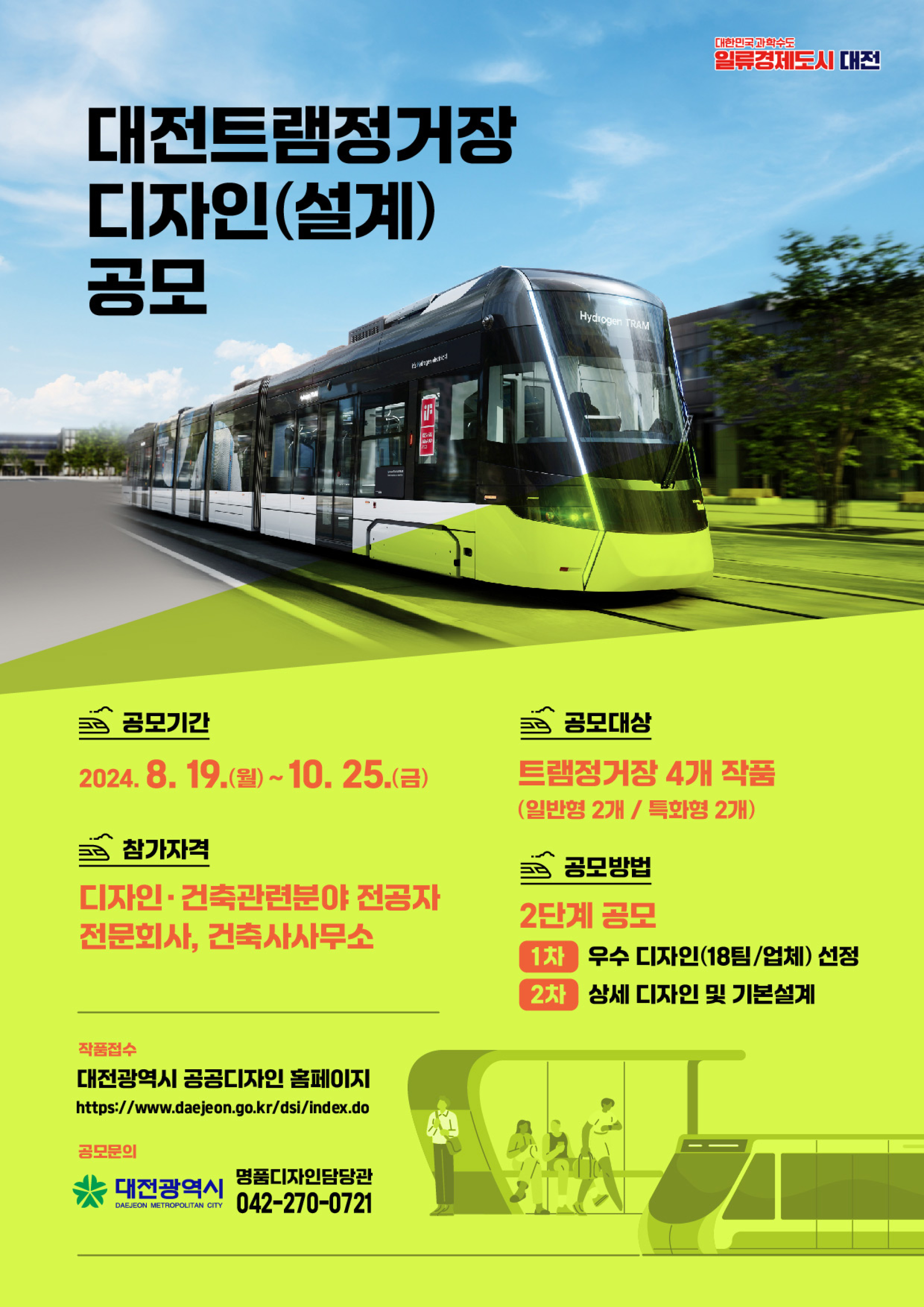 적용하기 위하여 "대전 도시철도 2호선 정거장(트램) 디자인(설계)" 공모 추진