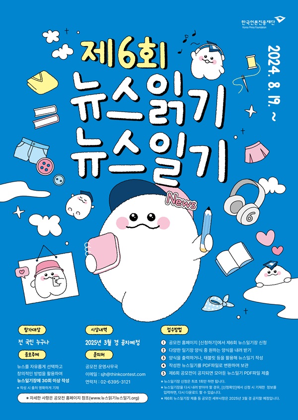 2024.8.1.(화), 문화(13면), 김△△, “언론진흥재단, 제6회 뉴스읽기 뉴스일기 공모” |