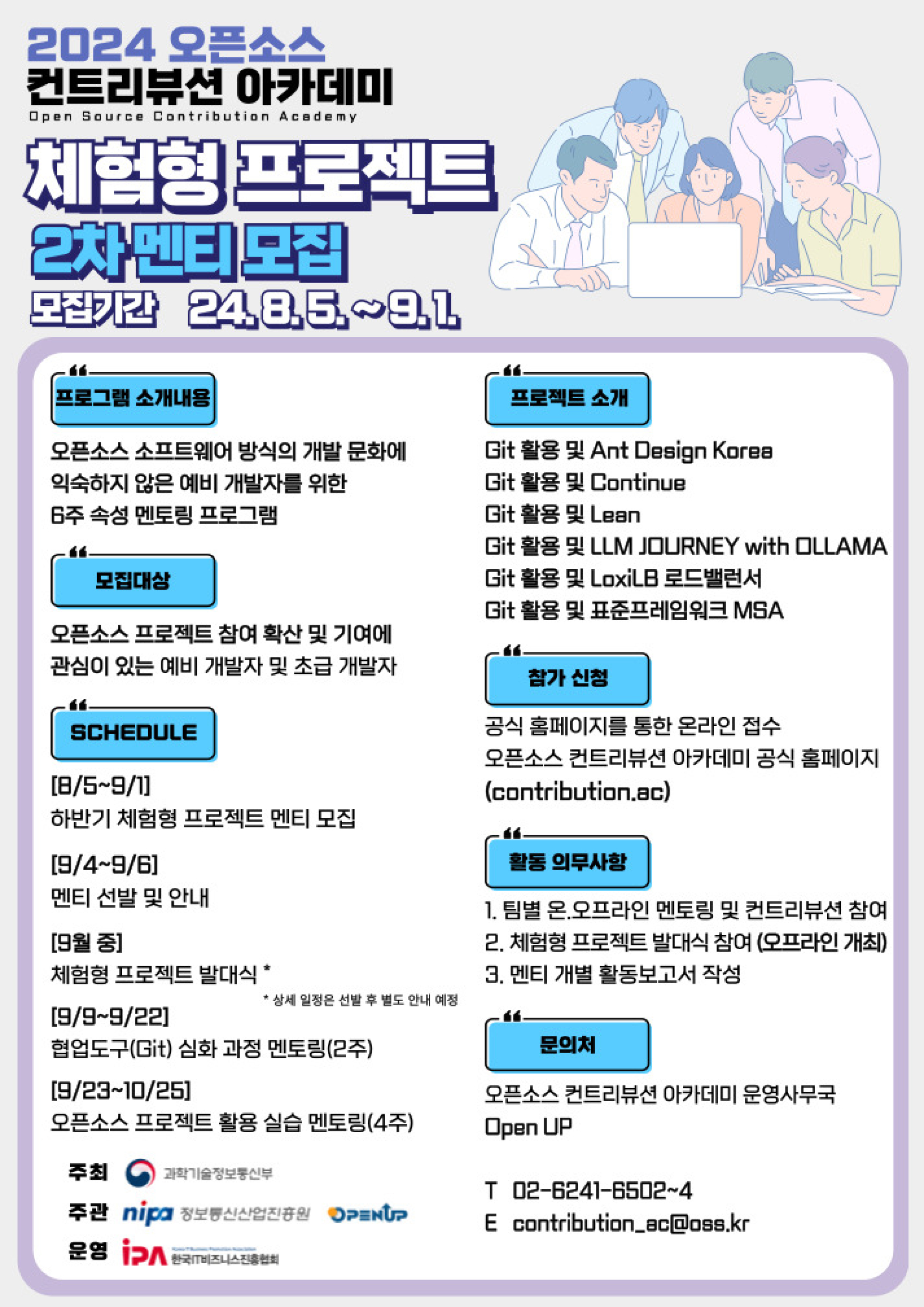 2024 오픈소스 컨트리뷰션 아카데미 체험형 프로젝트 2차 멘티 모집
