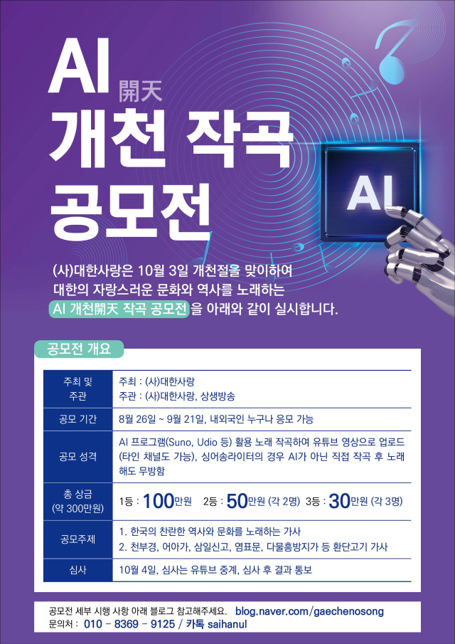 문화와 역사를 노래하는 AI작곡 공모전을 아래와 같이 실시합니다.