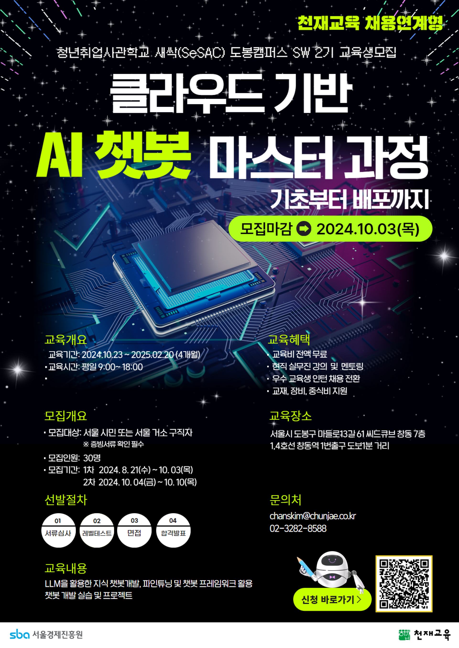 [서울시 청년취업사관학교 도봉캠퍼스] 클라우드 기반 AI챗봇 개발 마스터 과정 교육생 모집 - 교육비 전액 무료! 천재교육 채용연계과정!