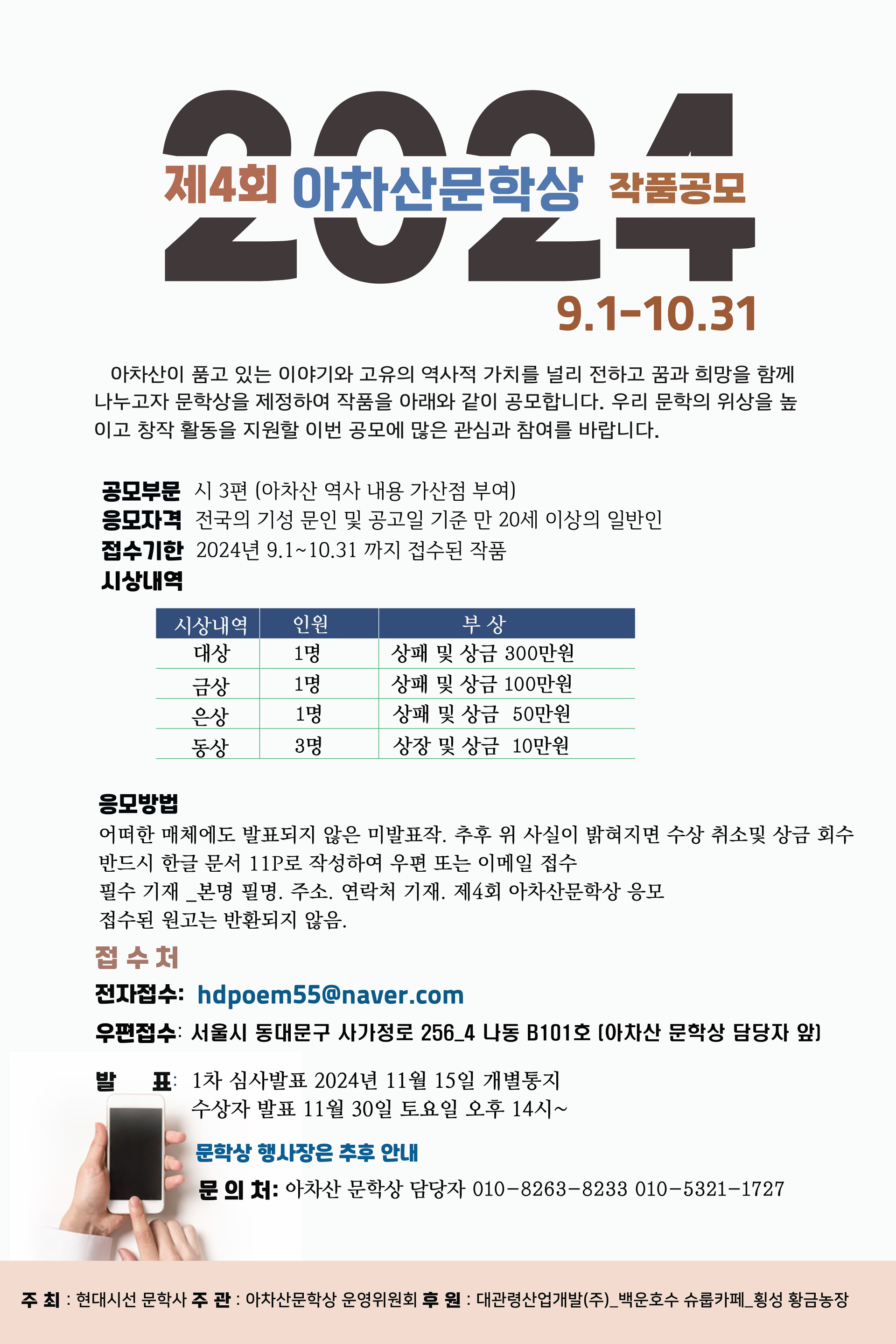 - 문의처: 아차산 문학상 담당자 010-8263-8233 010-5321-1727