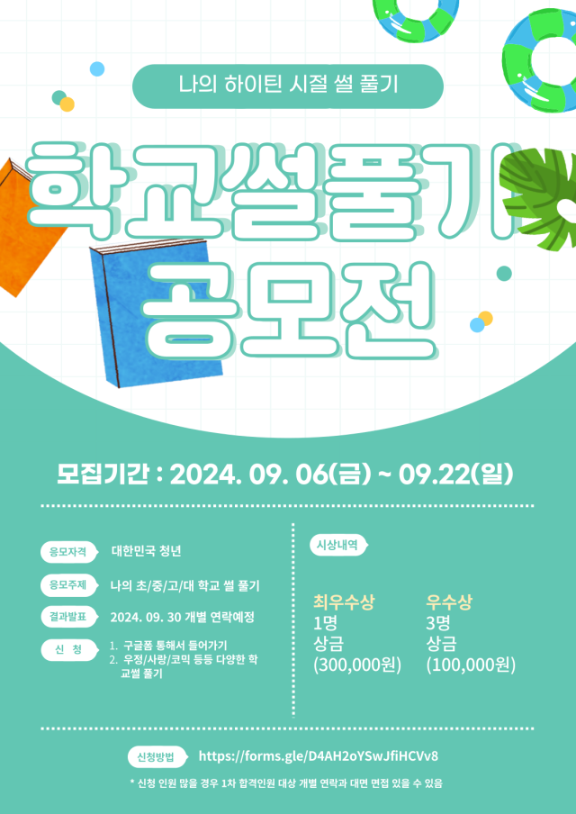 | 시상내역 | ■ 최우수상(1명) : 30만원 ■ 우수상(3명) : 10만원 |