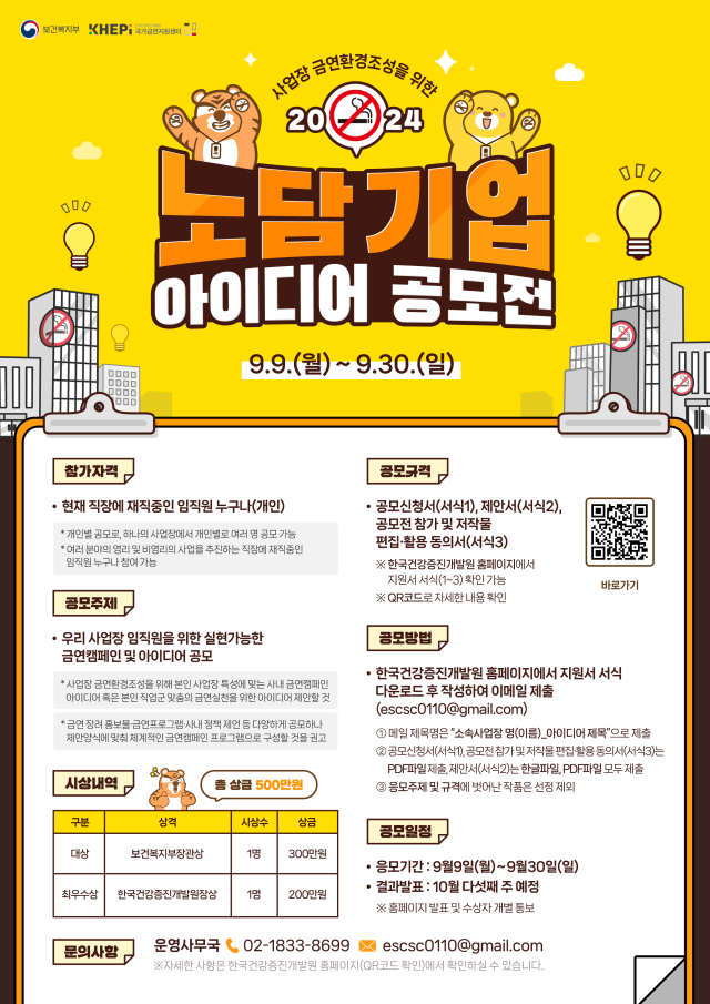 - (공모주제) 우리 사업장 임직원을 위한 실현가능한 금연캠페인 및 아이디어
