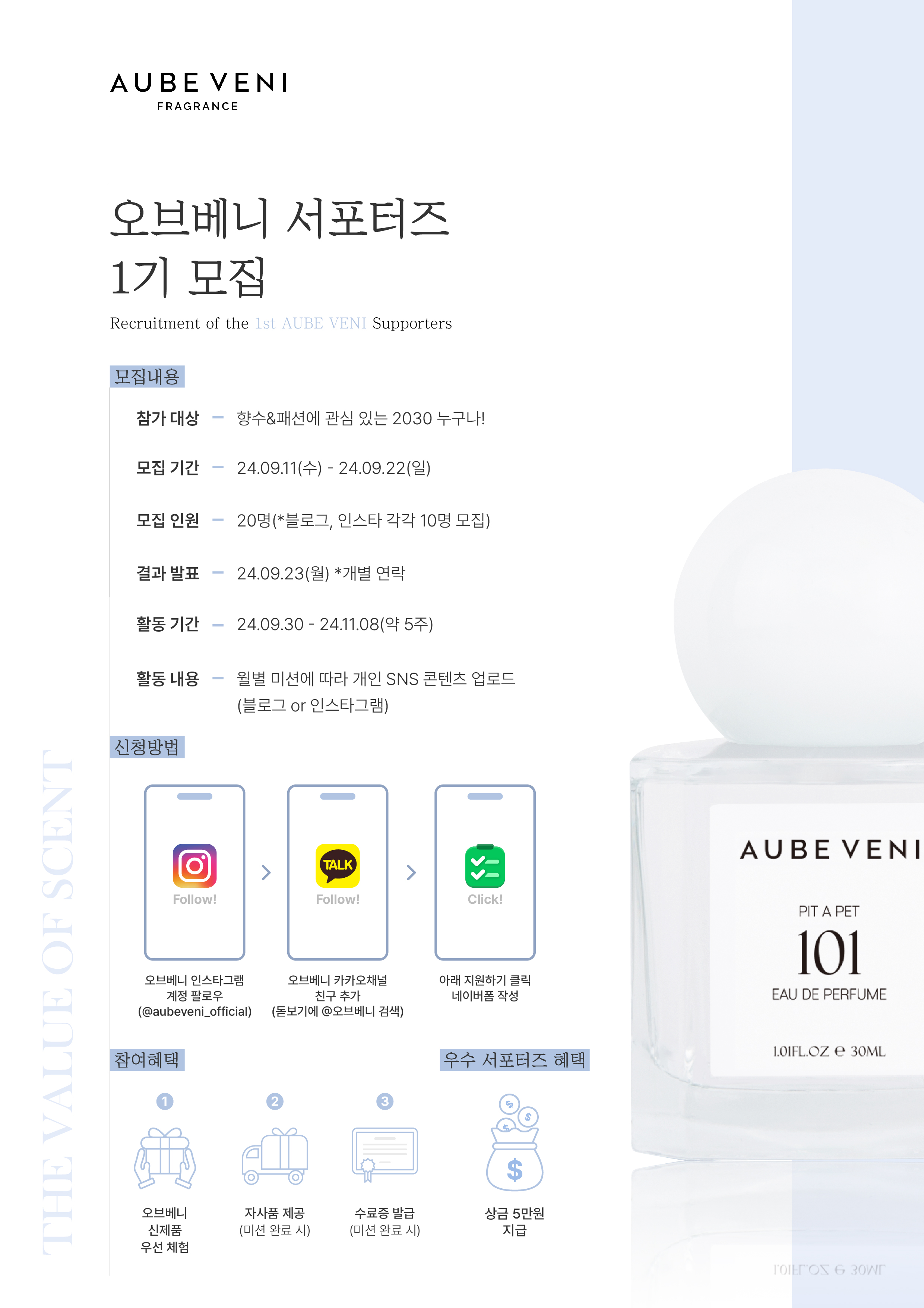 제목 니치향수 브랜드 오브베니에서 서포터즈 1기 모집합니다.