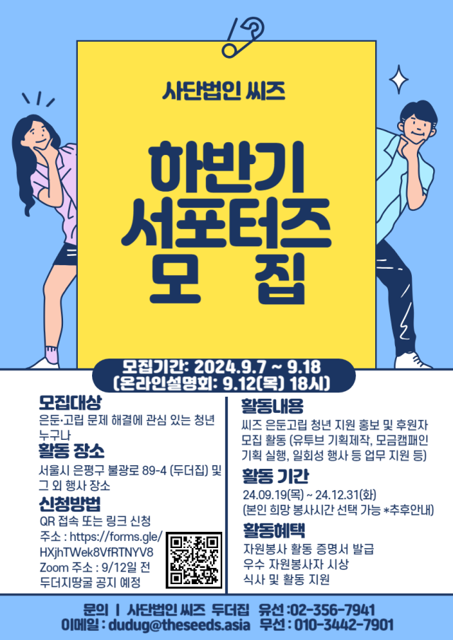 은둔고립청년지원 서포터즈 (두두서포터즈) 모집