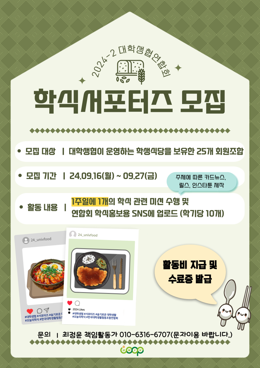 2024-2 대학생협 식당 서포터즈 '쿠비' 모집