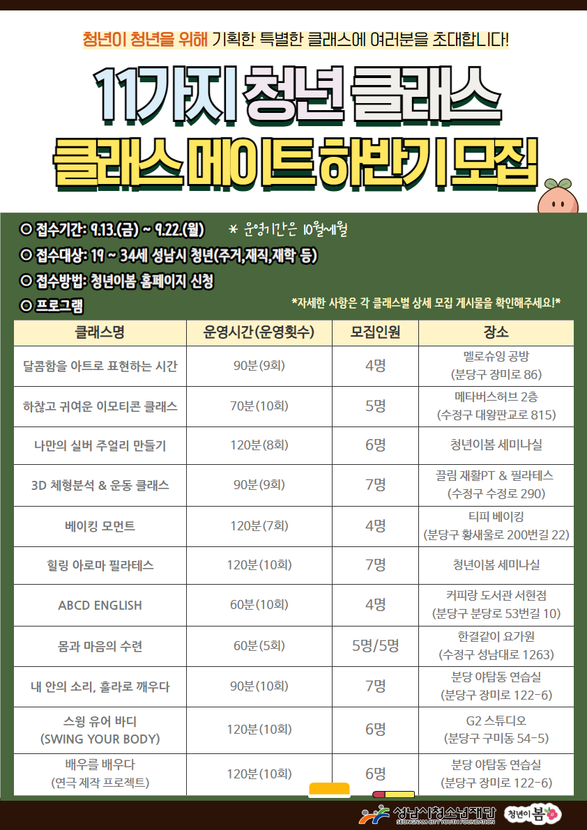 2024년도 하반기 청년 클래스메이트 11가지 클래스 참가자 모집