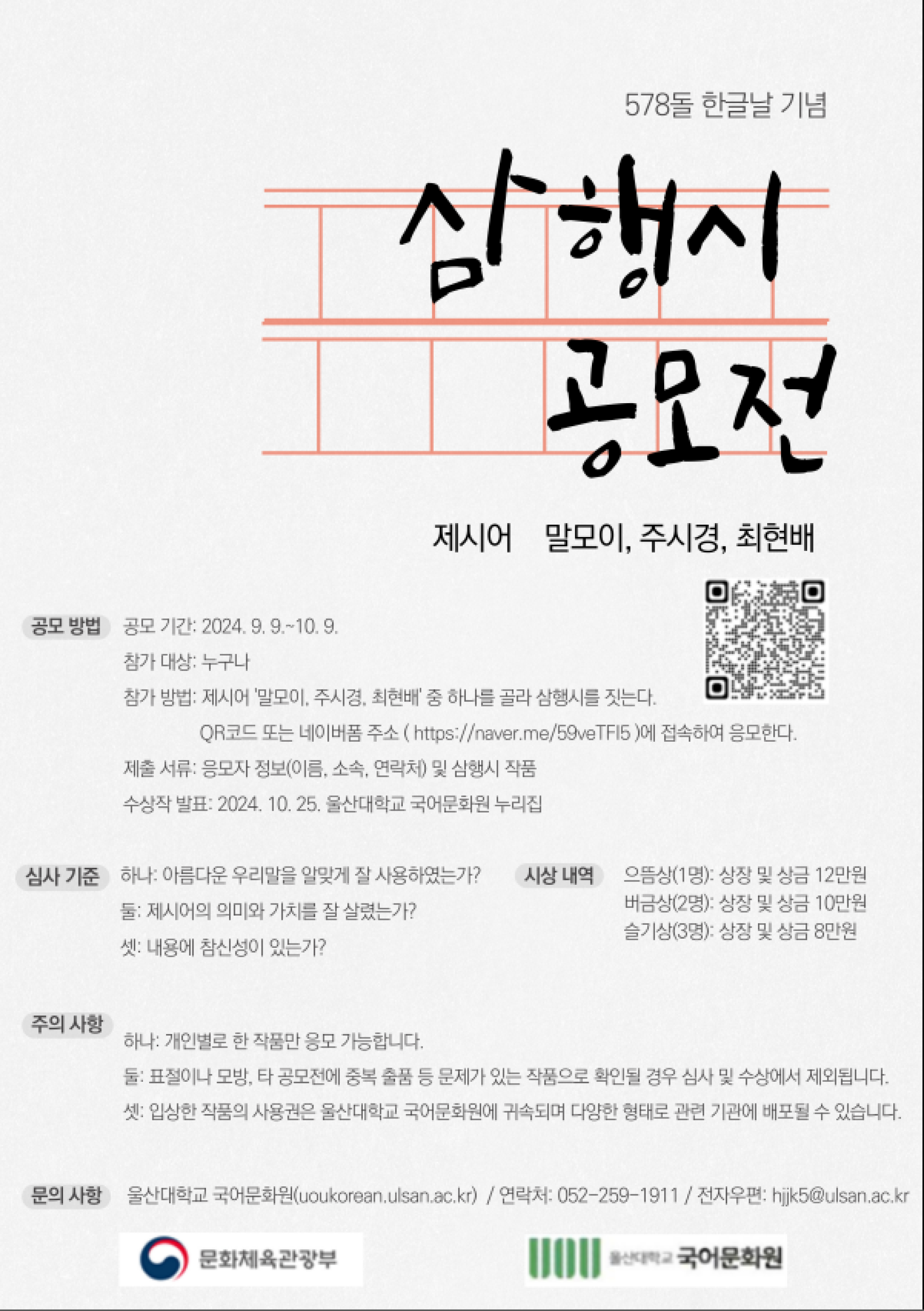 - 입상한 작품의 사용권은 울산대학교 국어문화원에 귀속되며