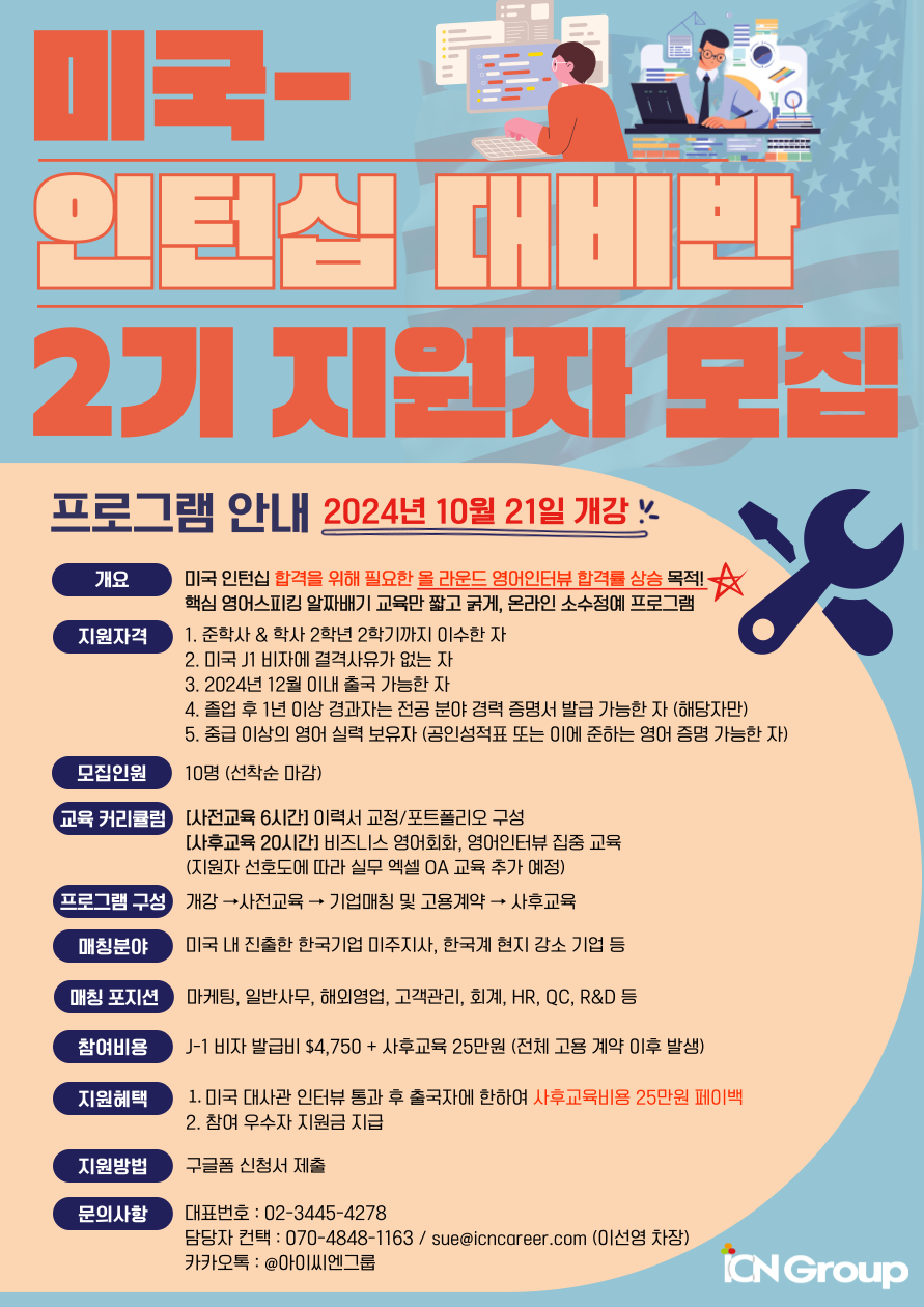 - 미국인턴십 전문기관 '아이씨엔그룹' 자체 기획/설계 교육+