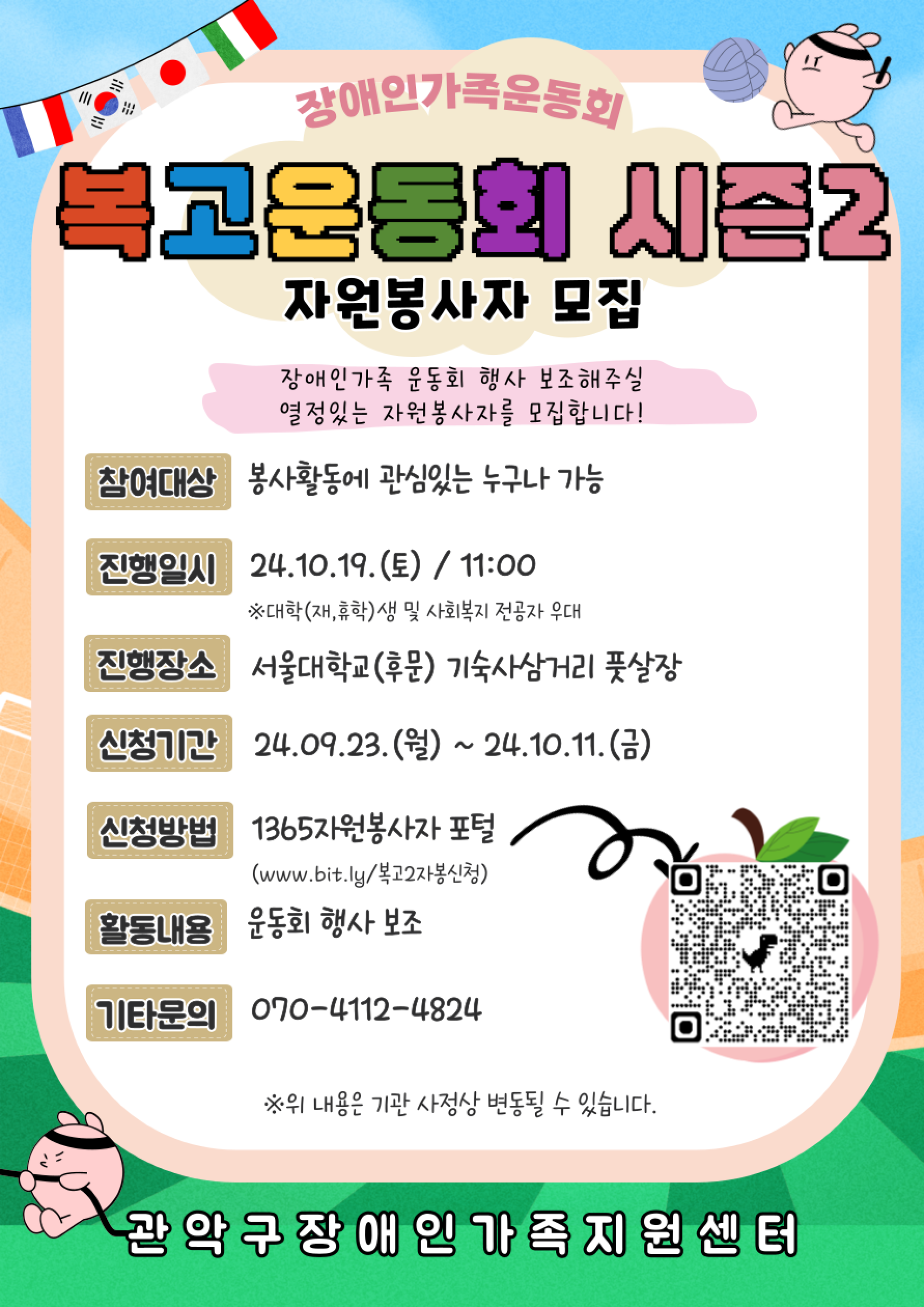 [관악구장애인가족지원센터] 장애인 가족 운동회 자원봉사자 모집