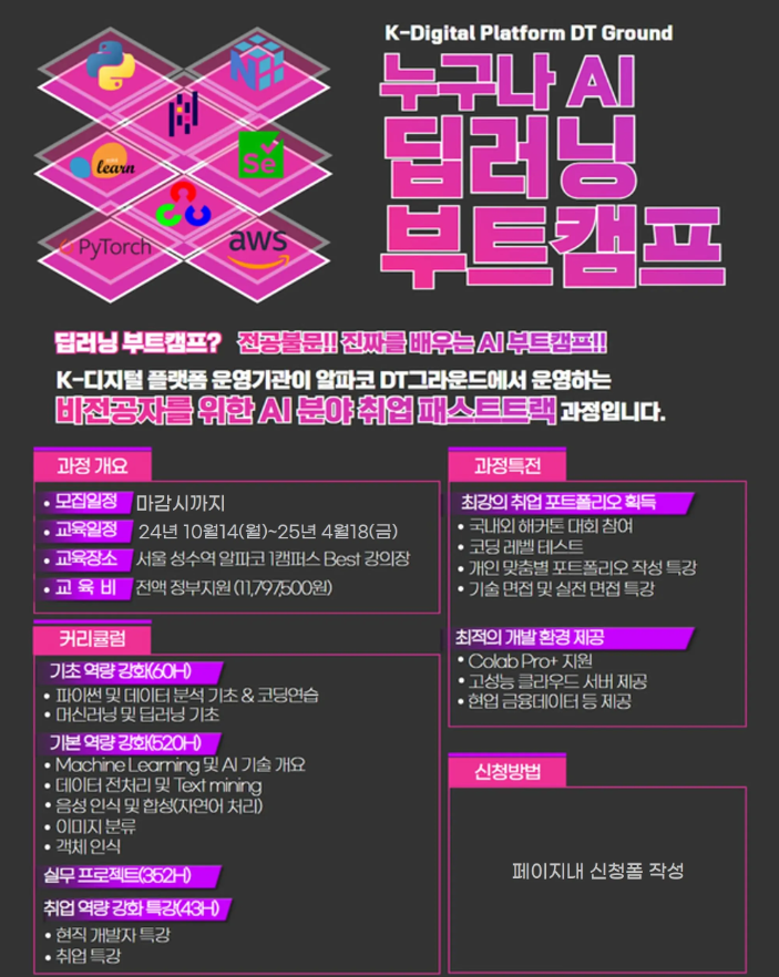 [알파코] AI인공지능 딥러닝머신러닝 데이터분석 국비지원 취업교육 과정