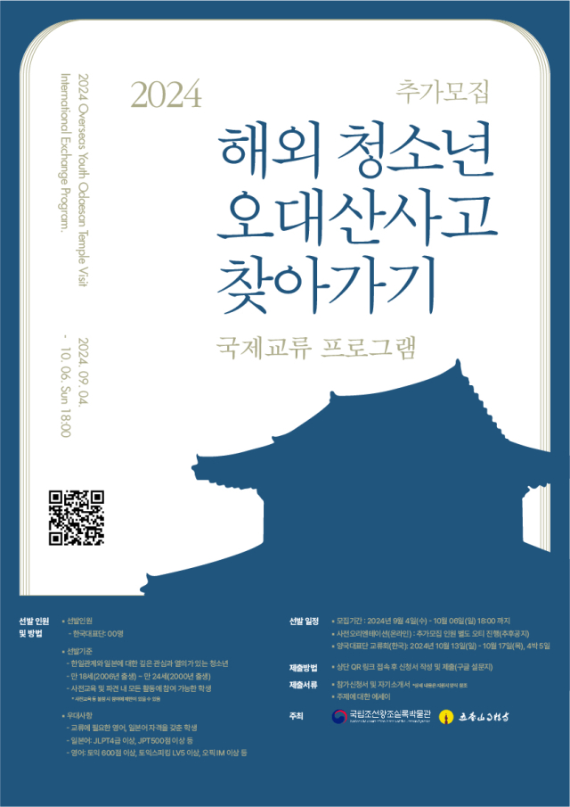 2024년 해외 청소년/대학생 오대산사고 찾아가기 국제교류 프로그램 한국대표단 추가모집