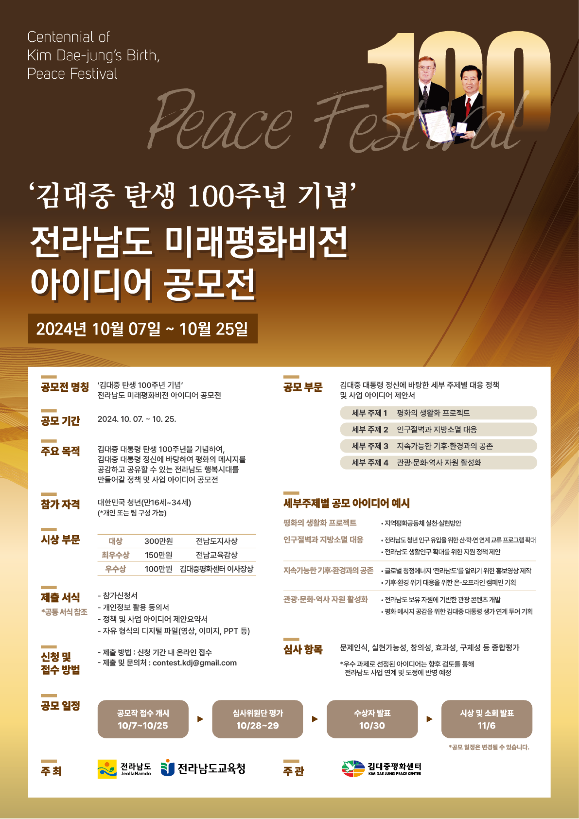 김대중 탄생 100주년 기념 전라남도 미래평화비전 아이디어 공모전