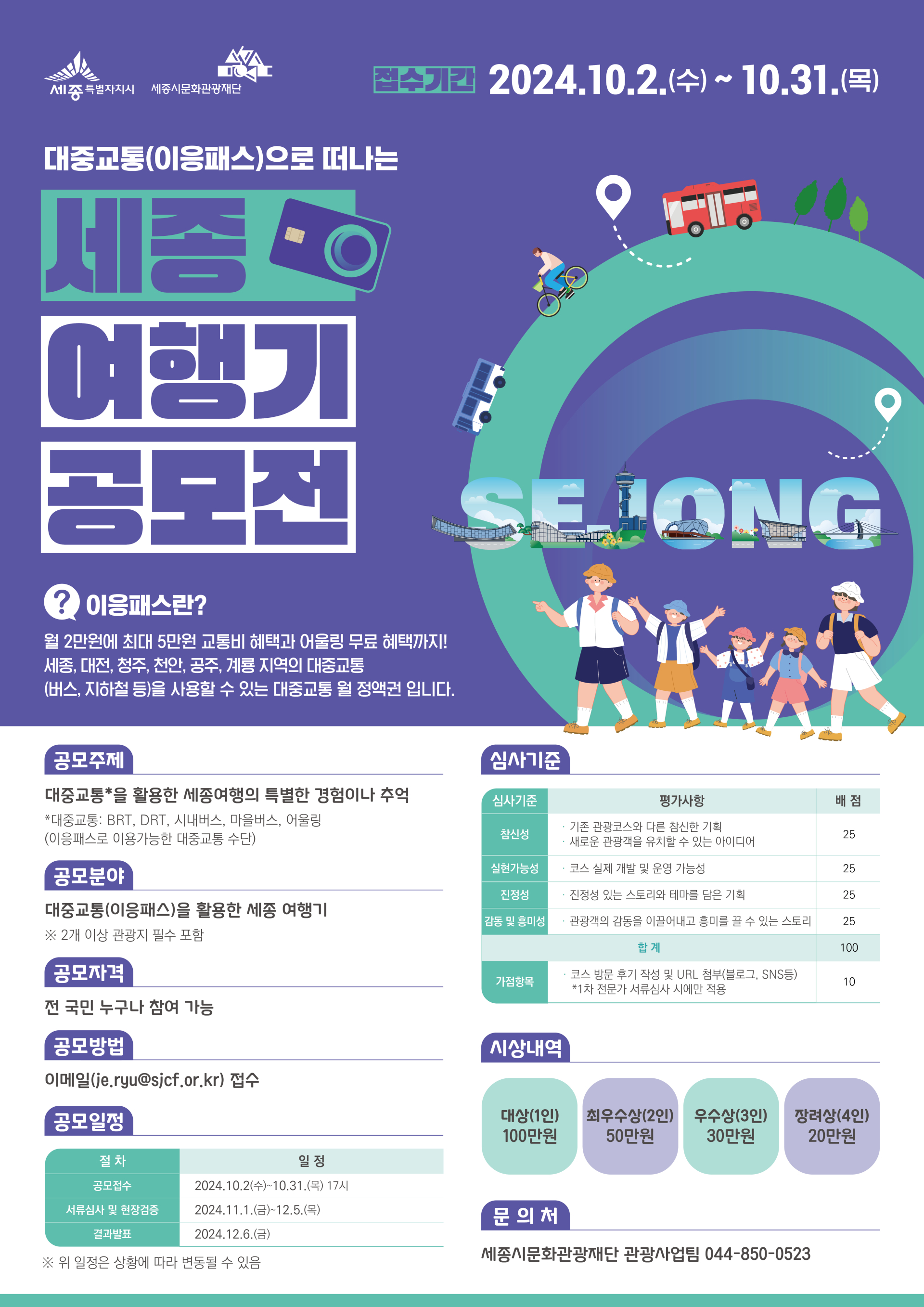 - 대중교통(이응패스)으로 떠나는 세종 여행기 공모전을 개최합니다.
