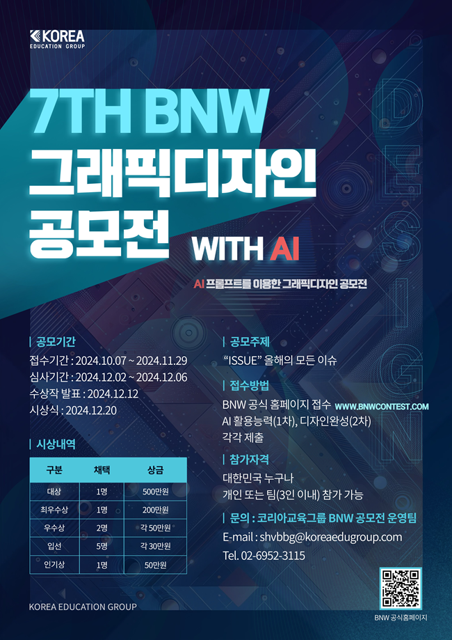 - ☏ 코리아교육그룹 디자인 공모전 사무국 02-6952-3115 (평일 09:00~18:00)