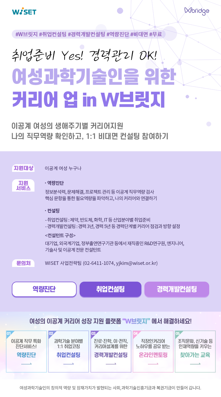 - ☏ WISET 사업전략팀 02-6411-1074, yjkim@wiset.or.kr