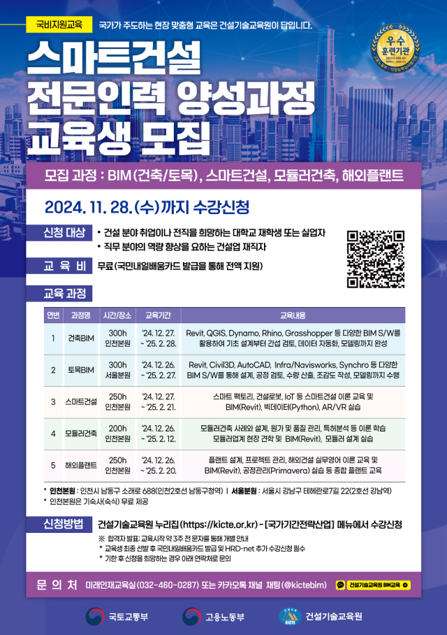 [건설기술교육원] 2024년 겨울학기 BIM, 스마트, 모듈러, 플랜트 교육생 모집