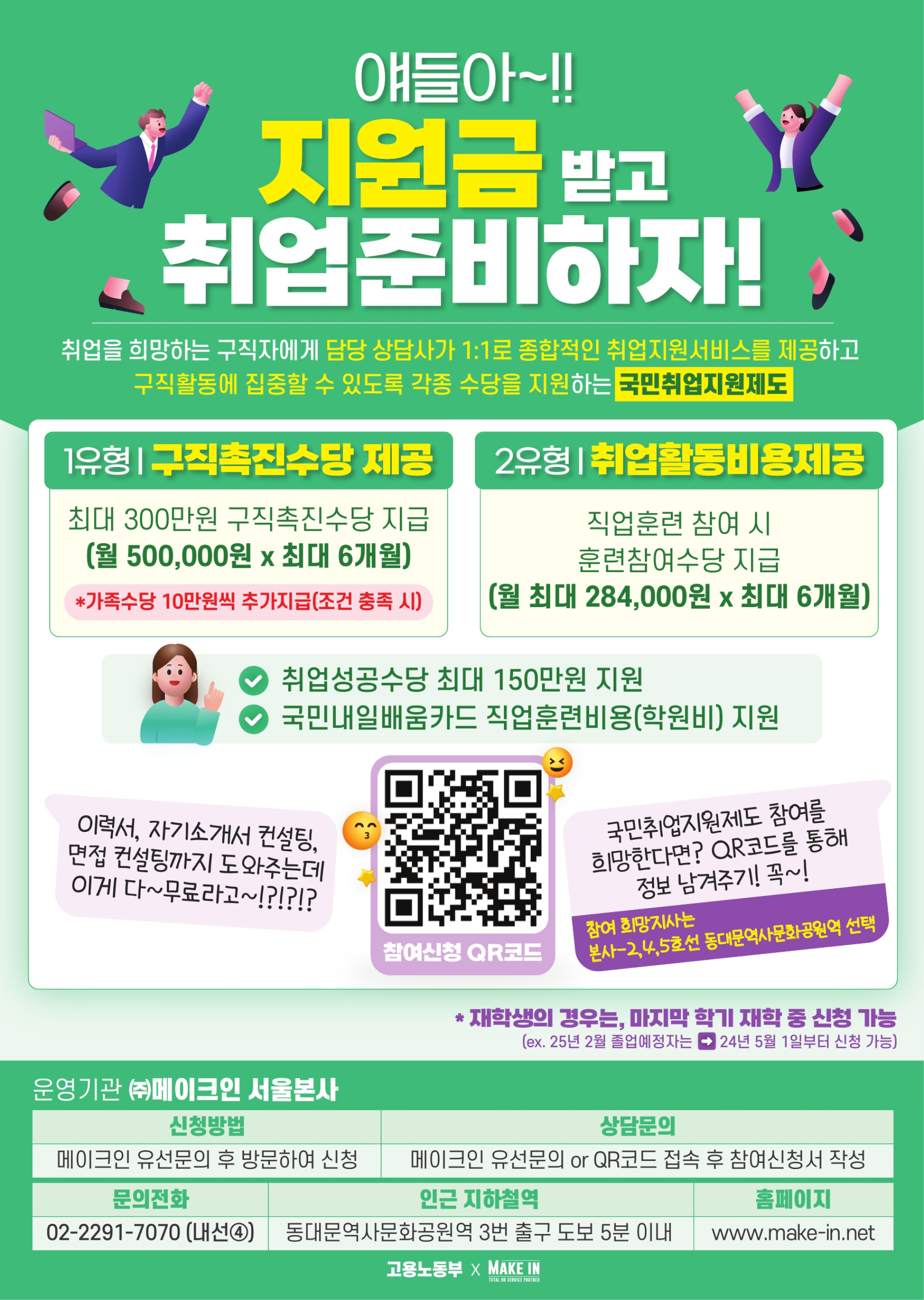 [고용노동부 X Make In(메이크인)] "국민취업지원제도" 참여자 모집
