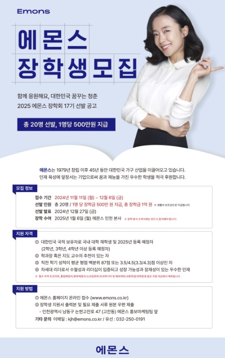 · 선발된 학생은 2025년 1월 6일(월) 에몬스 인천 본사에서 진행되는