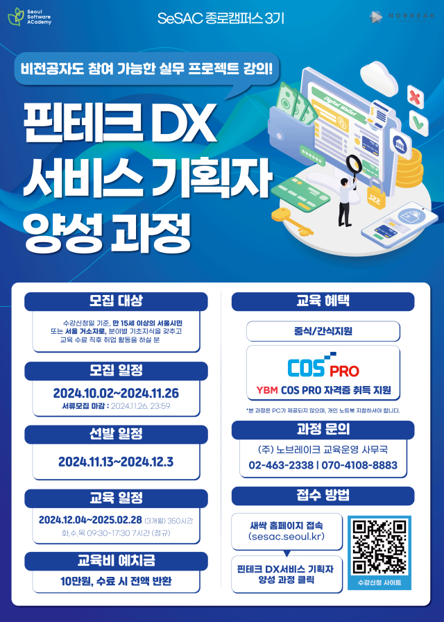 청년취업사관학교 새싹(SeSAC) 종로캠퍼스 3기 <핀테크DX 서비스 기획자 양성 과정>