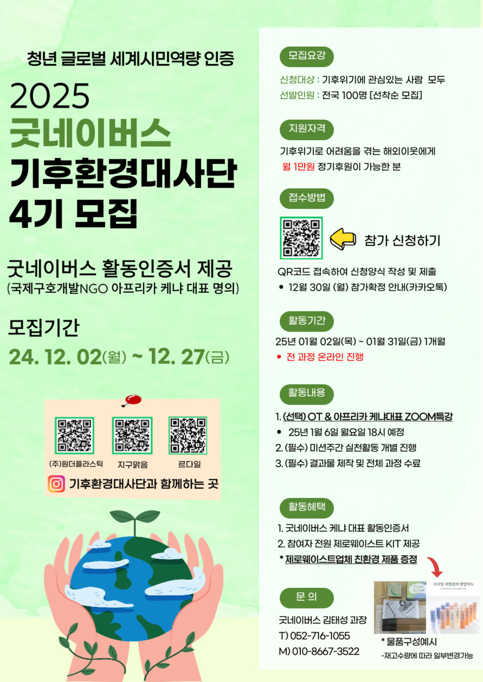 [청년 취업 포트폴리오(세계시민역량) 활동] 굿네이버스 기후환경대사단 4기 활동 모집 안내.