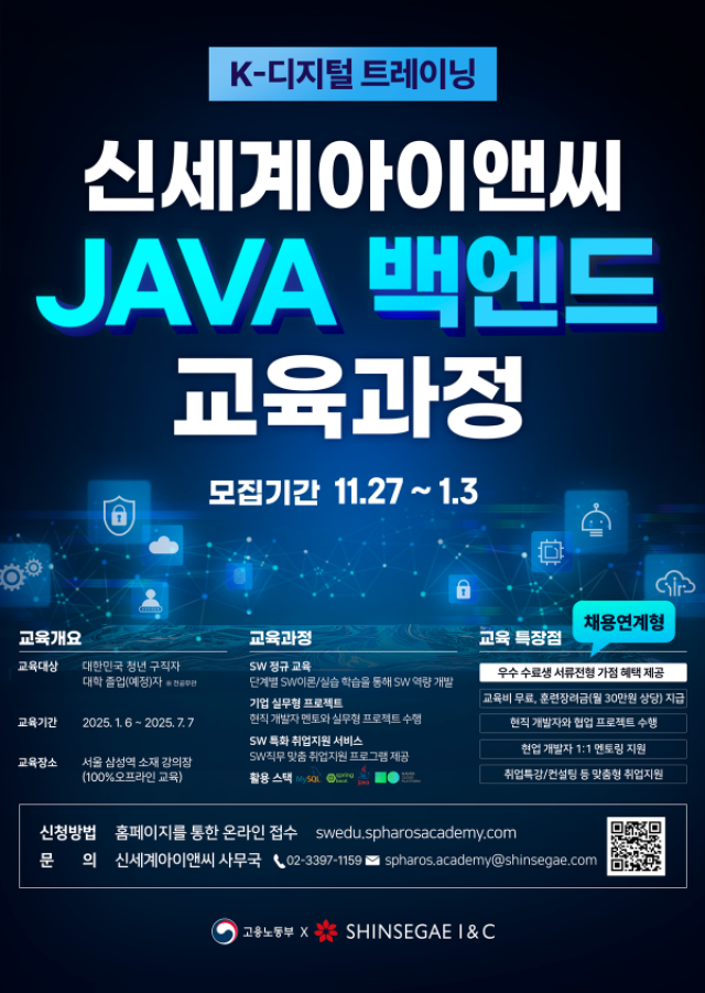 [개발자 취업] 신세계아이앤씨 JAVA 백엔드 개발 과정 교육생 모집