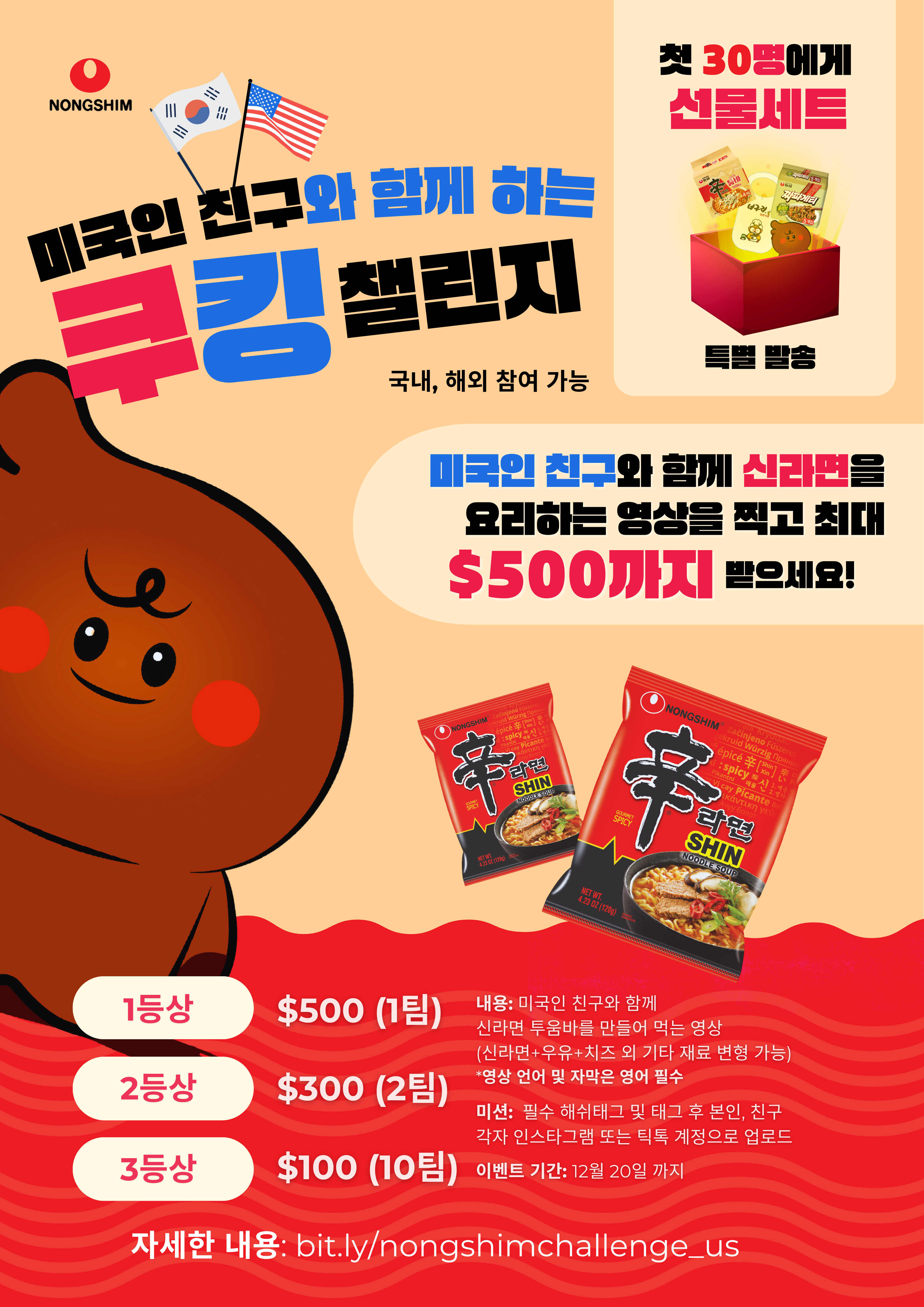 ※ 본 챌린지는 미국 혹은 미국인 내 농심 신라면, 신라면툼바(신제품) 홍보 목적으로