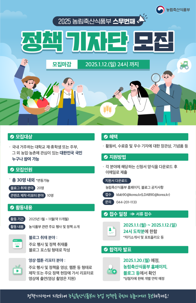- 합격자 발표 : 2025. 1. 20.(월) 농림축산식품부 홈페이지 또는 블로그 공지