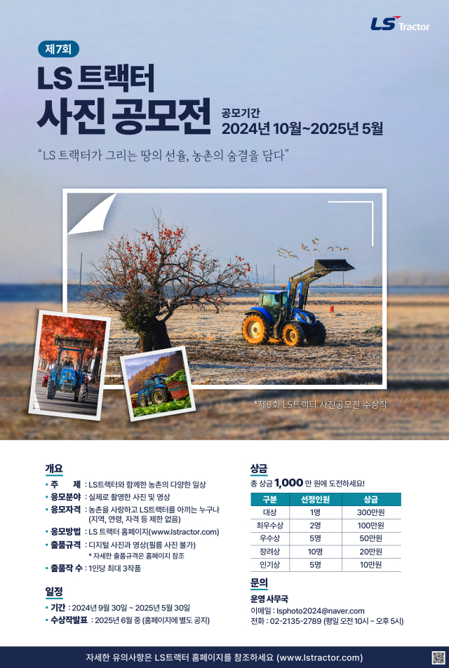 - LS트랙터 사진공모전 운영사무국 ☏ 02-2135-2789 / lsphoto2024@naver.com