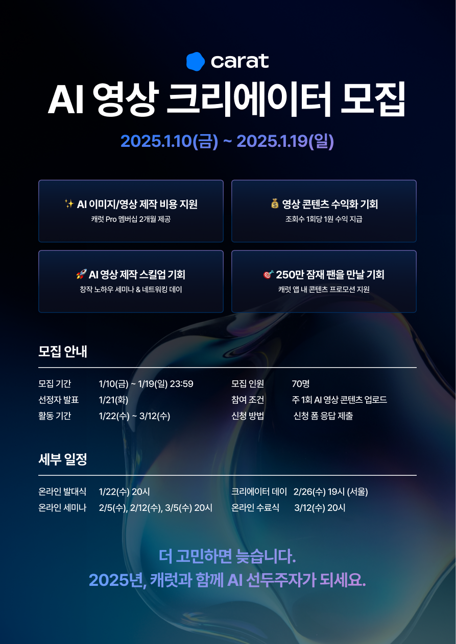 캐럿 AI 영상 크리에이터 모집 (1/10~1/19)
