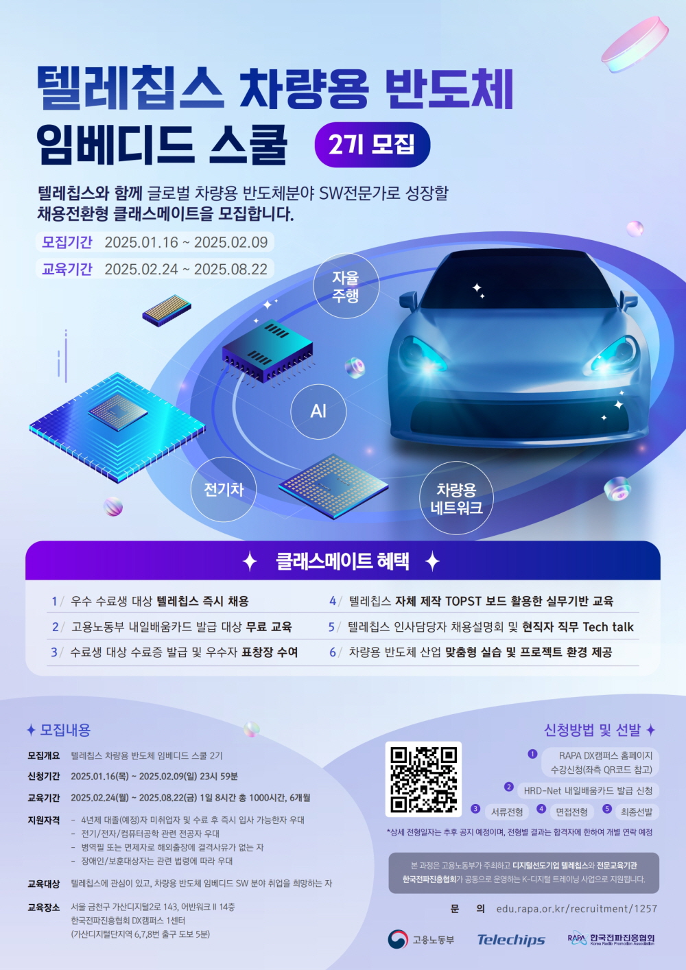 - 우수 수료생 대상 텔레칩스 즉시 채용 지원