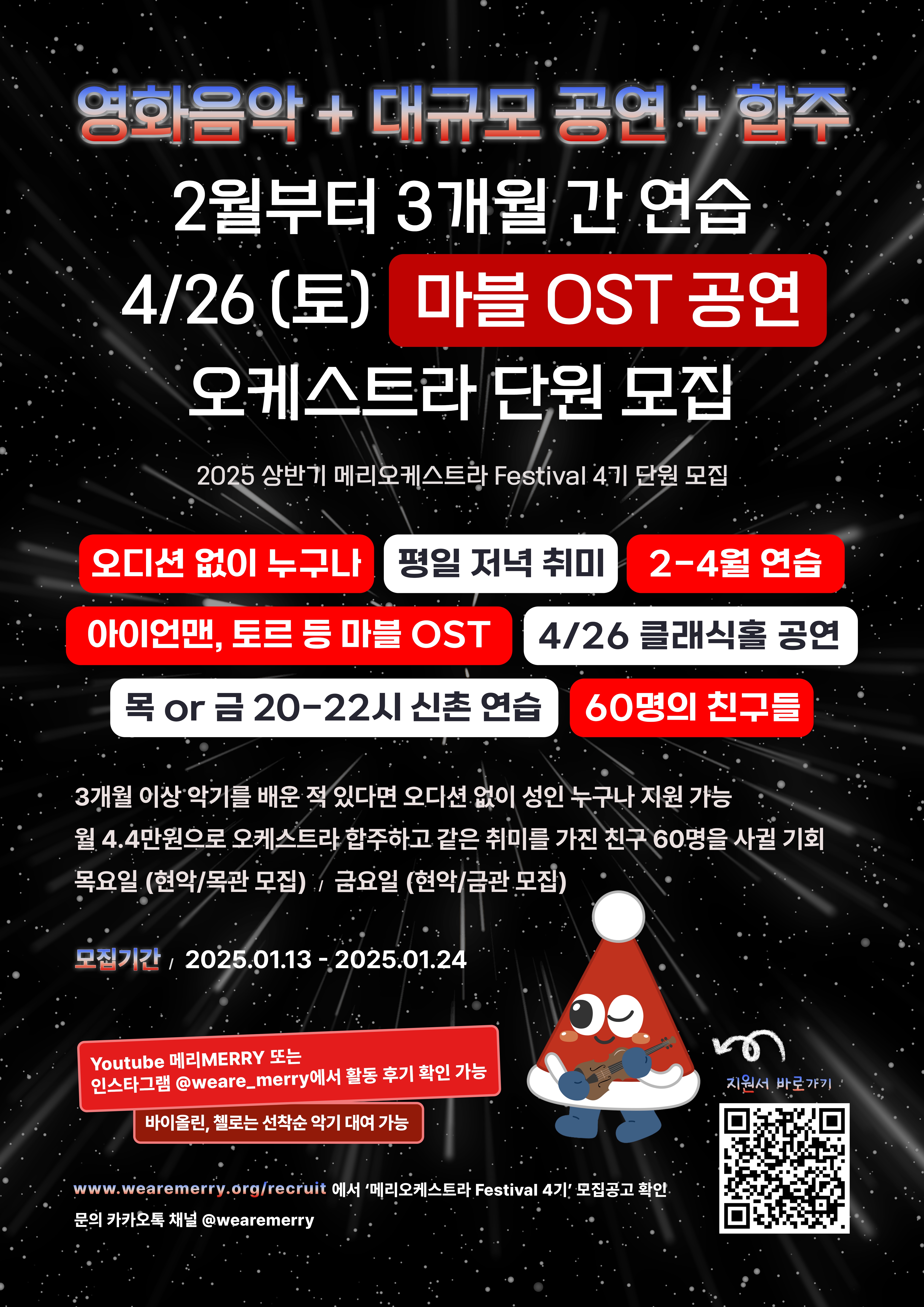 - 모집 파트 : 바이올린, 첼로, 비올라, 바순, 트롬본, 호른, 튜바