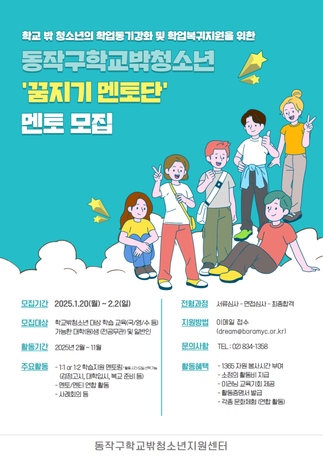 [동작구학교밖청소년지원센터] '꿈지기 멘토단' 멘토 모집