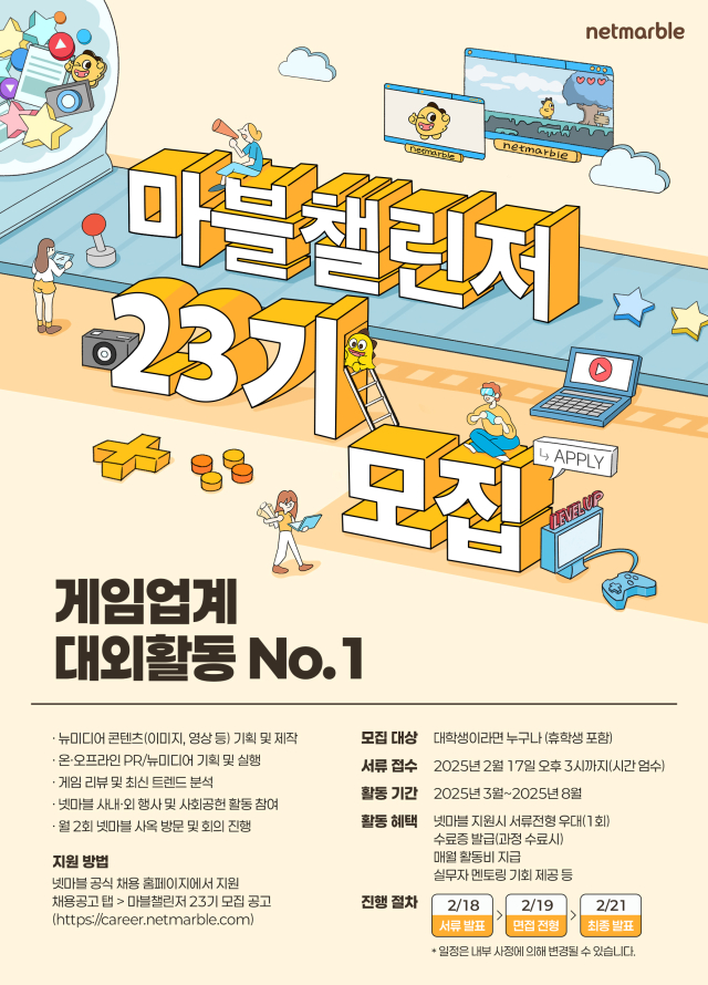 [넷마블] 대학생 서포터즈 마블챌린저 23기 모집