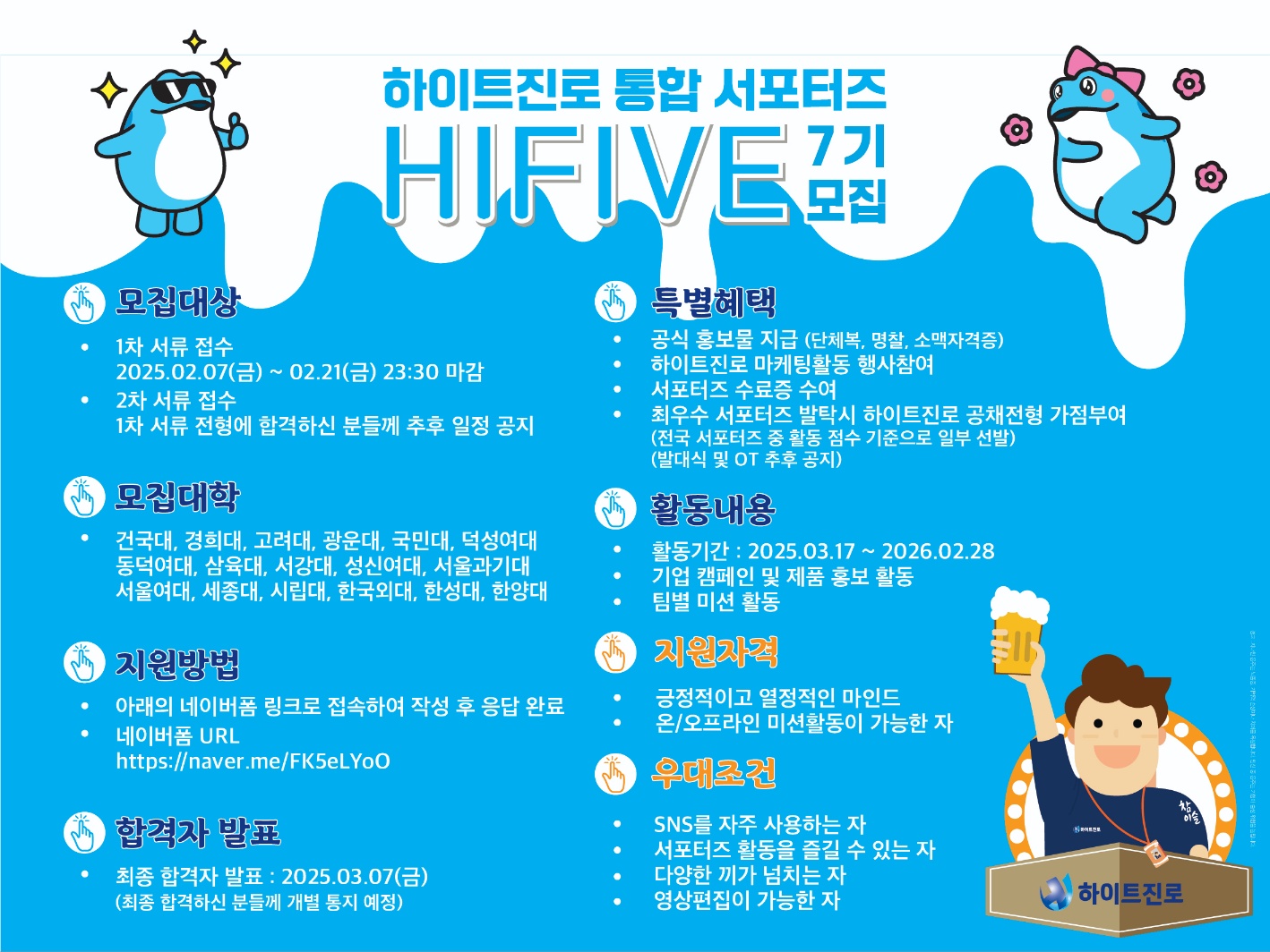 하이트진로 통합 서포터즈 하이파이브 7기 모집