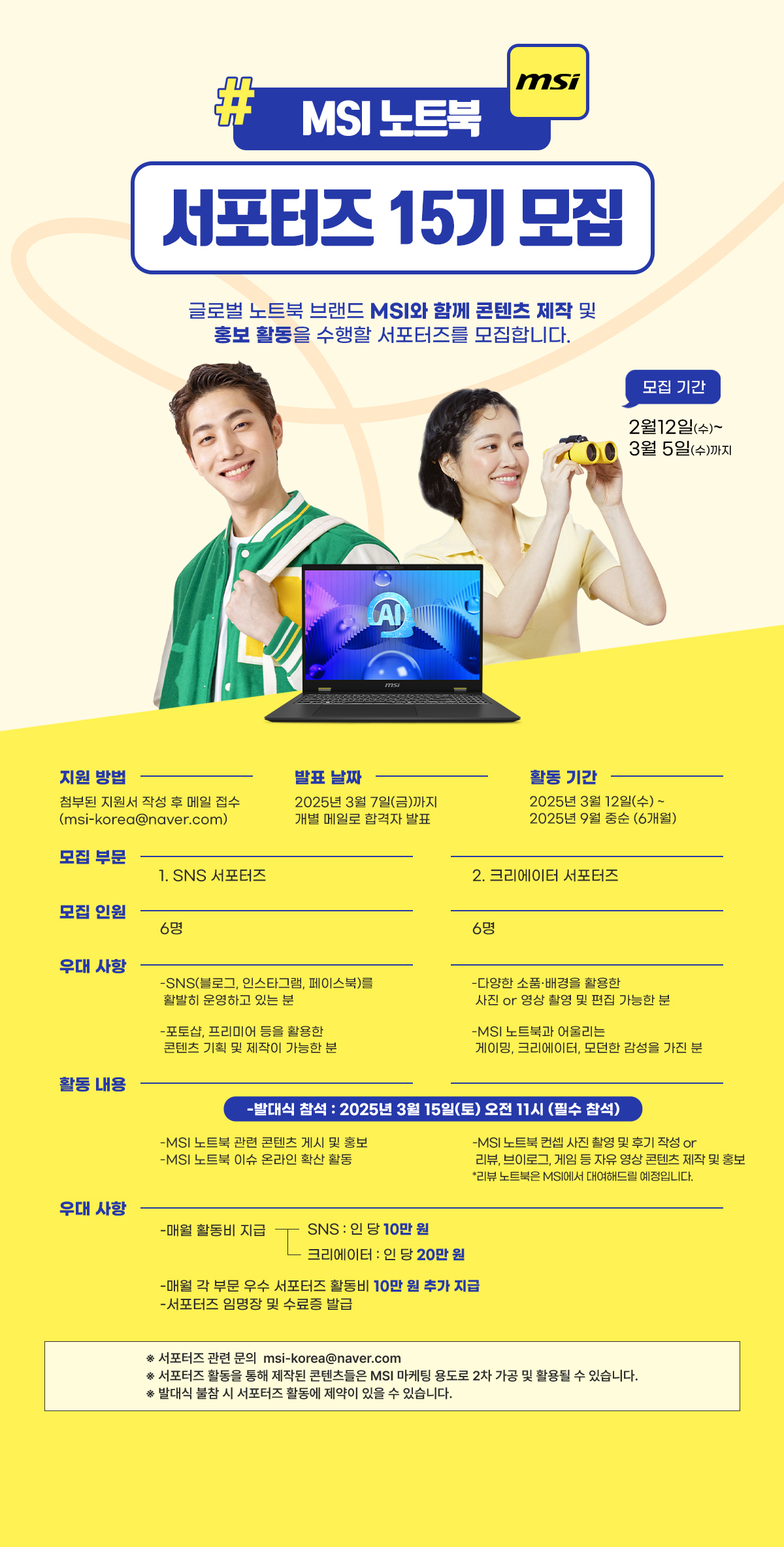 2025 MSI 노트북 서포터즈 15기 모집이 시작되었습니다!