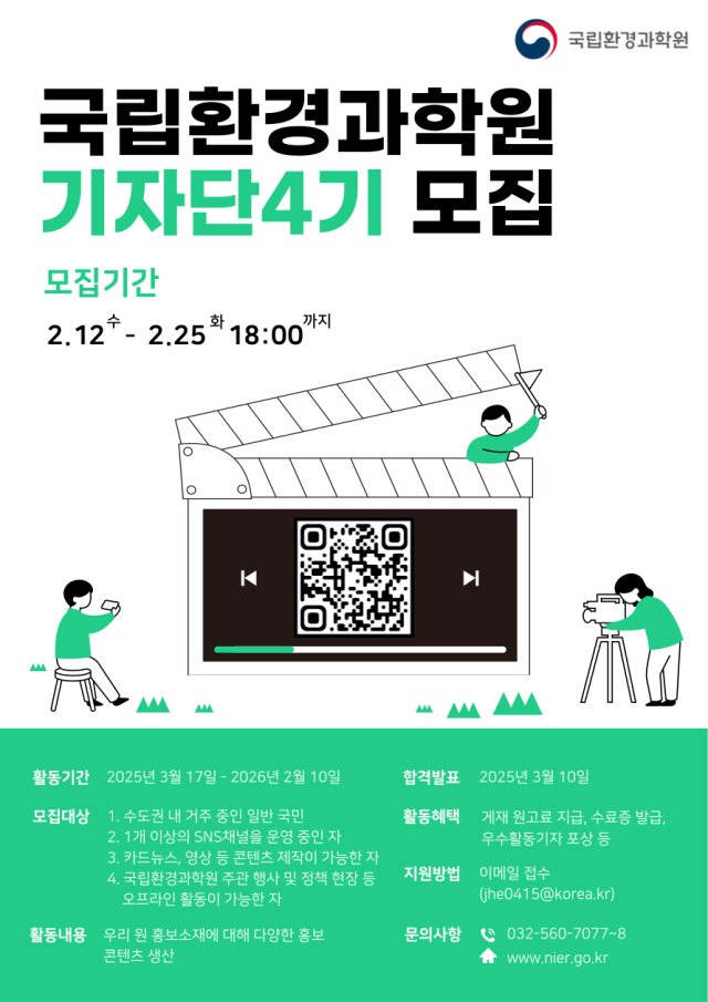 제4기 국립환경과학원 소셜기자단을 다음과 같이 모집합니다.