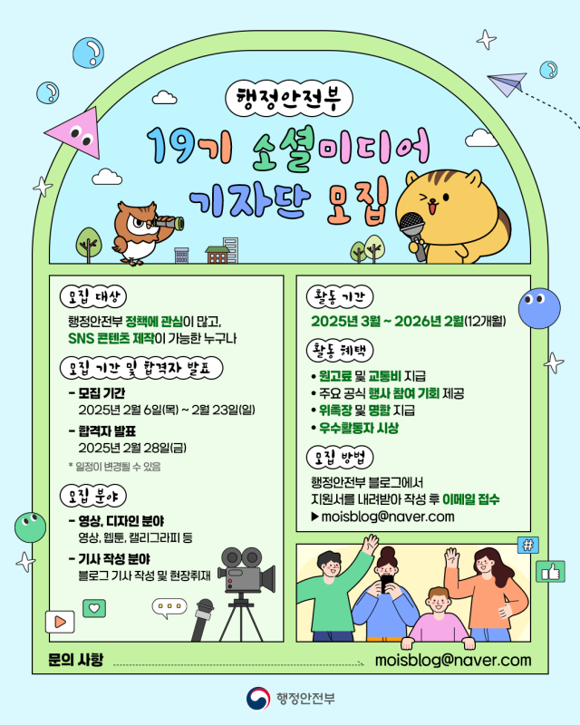 행정안전부 19기 소셜미디어 기자단 모집
