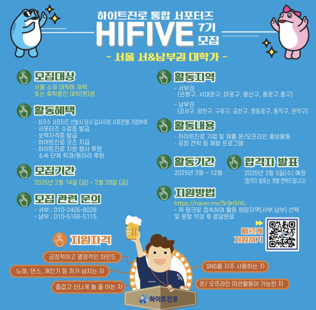 <하이트진로 통합서포터즈 '하이파이브' 7기 모집>