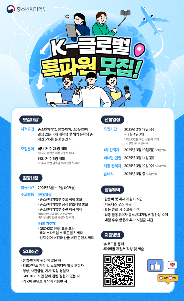중소벤처기업부에서 K-글로벌 특파원 2기를 모집합니다