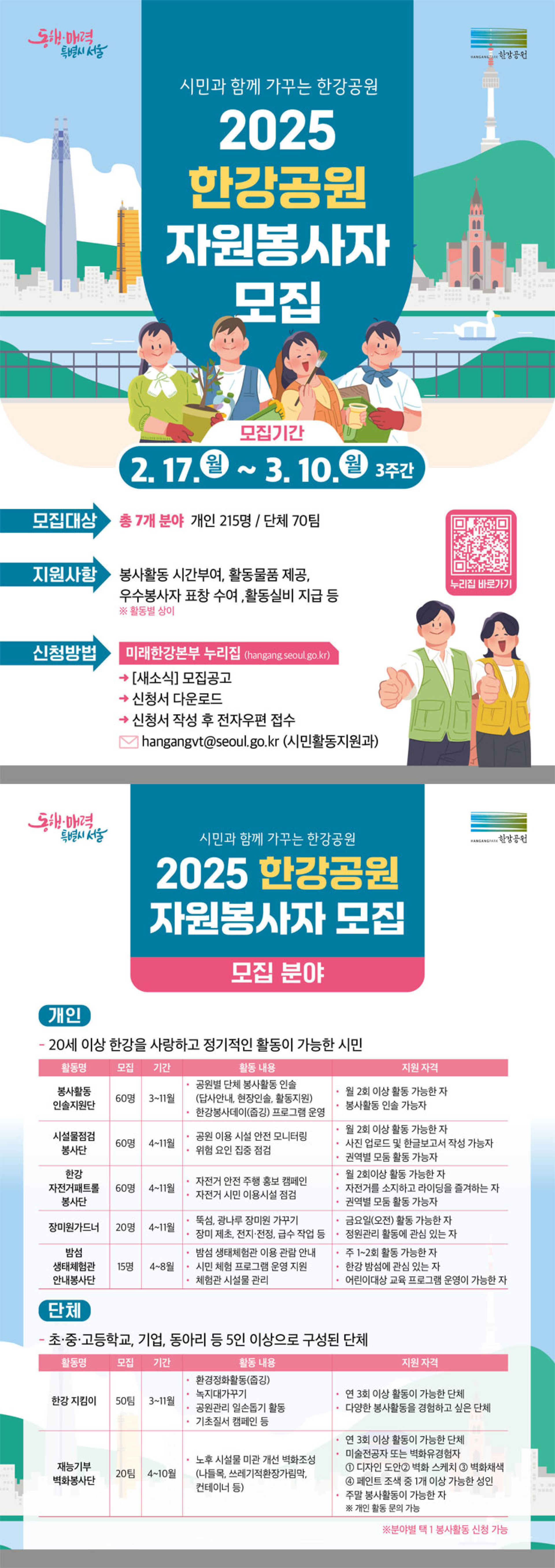 2025년도 한강공원 자원봉사자 및 단체 정기 모집
