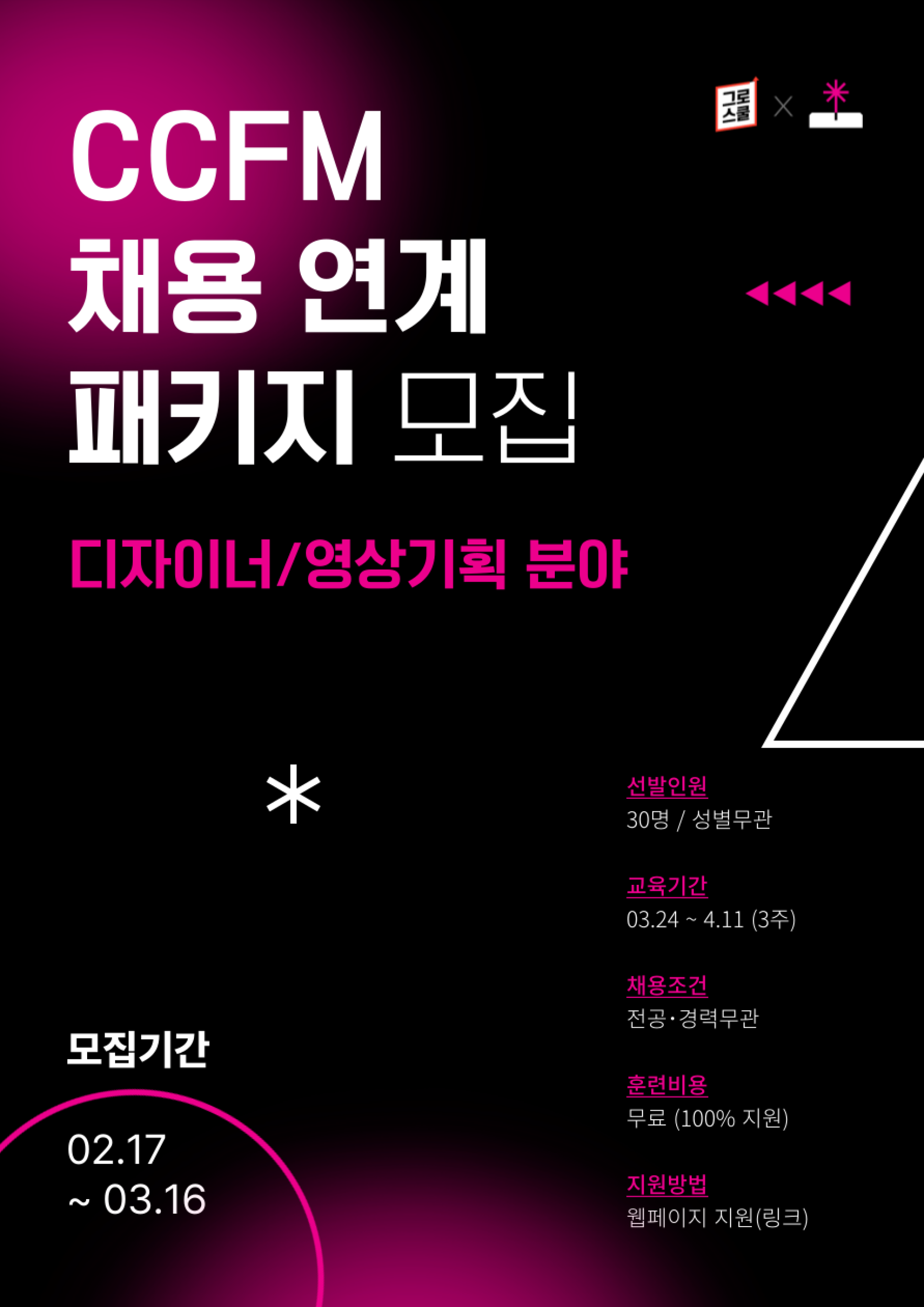 · CCFM 기업에 실제 정직원으로 채용 연계되는 프로그램 과정