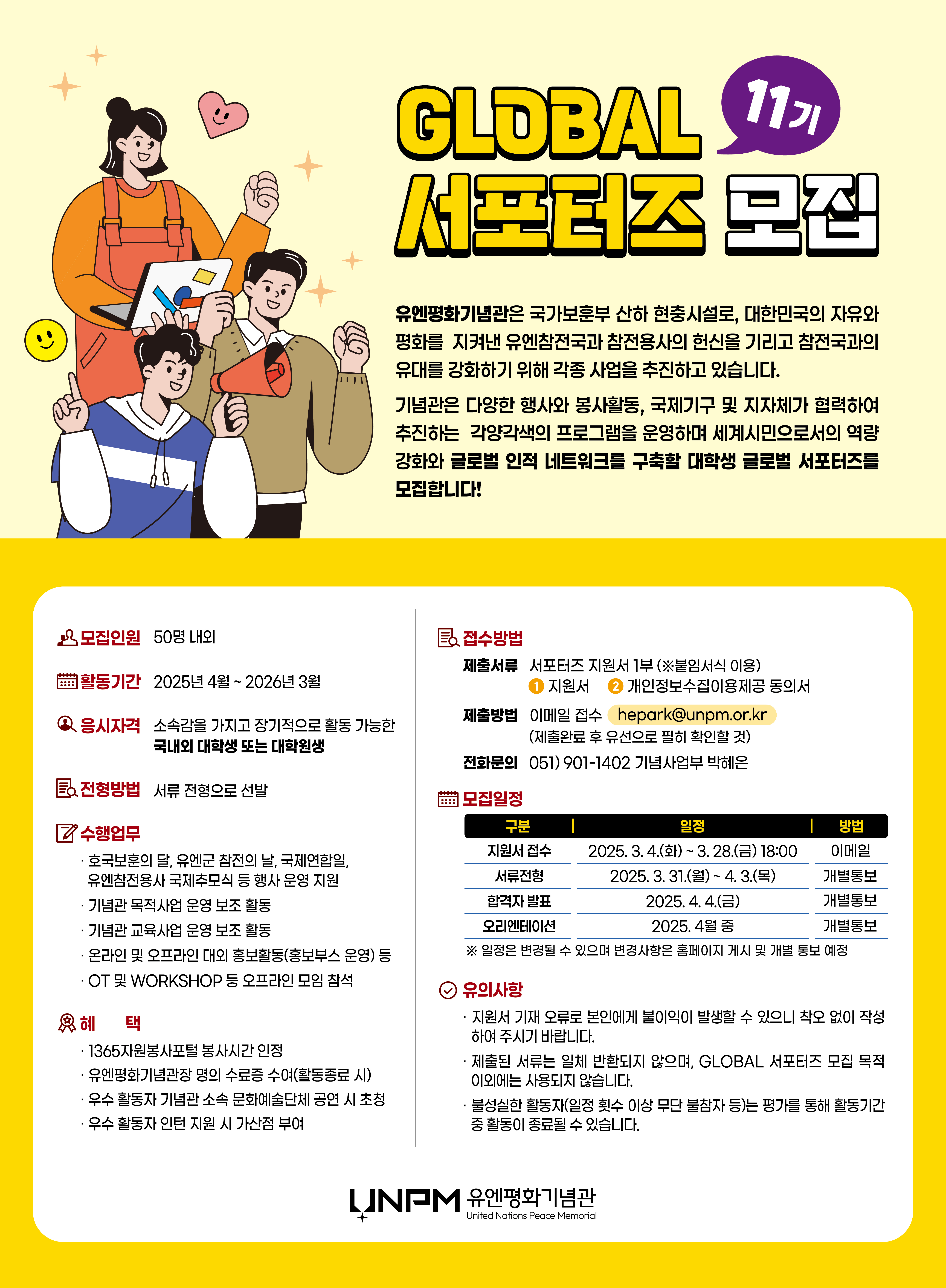 유엔평화기념관 제11기 글로벌 서포터즈 모집