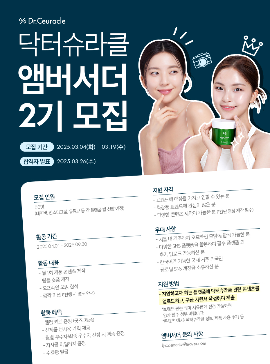 (주)이지함화장품 닥터슈라클 공식 앰버서더 2기 모집